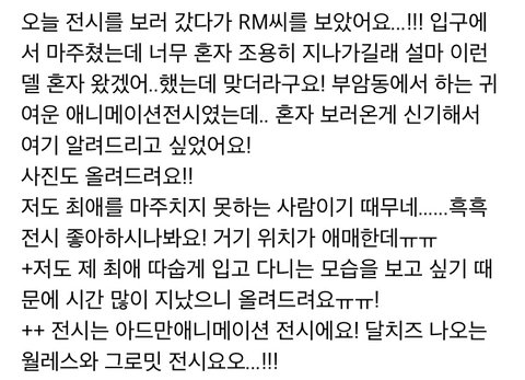 어제 남준이 전시회보러갔다함!!!(목격글올라옴)