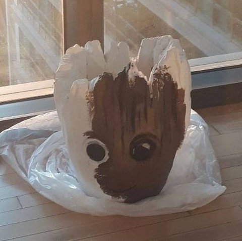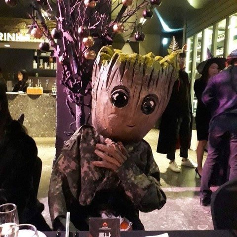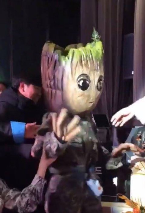 그루트 머리 쓰고 등장-