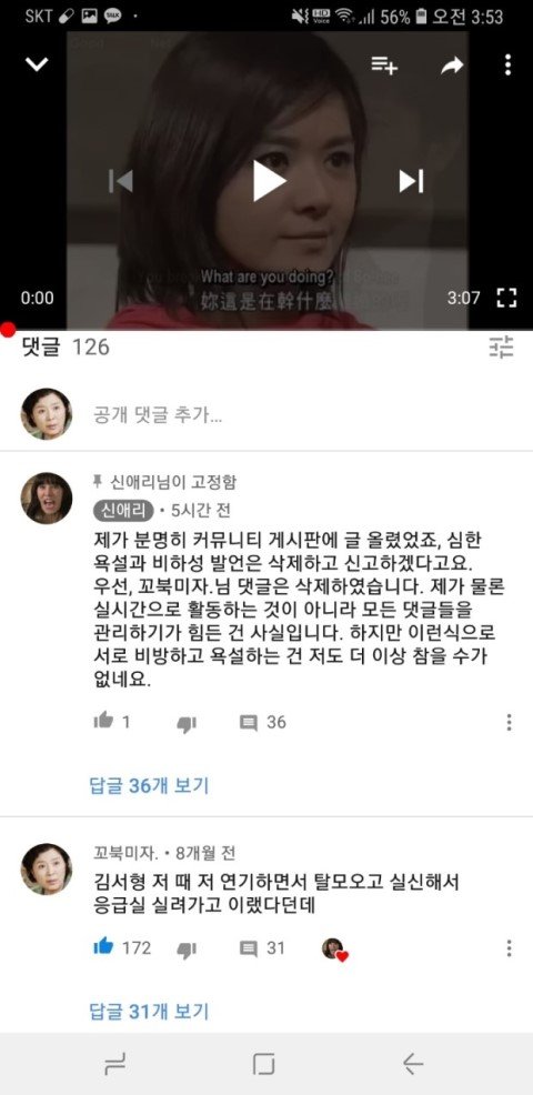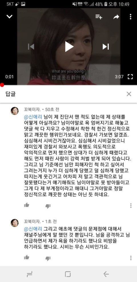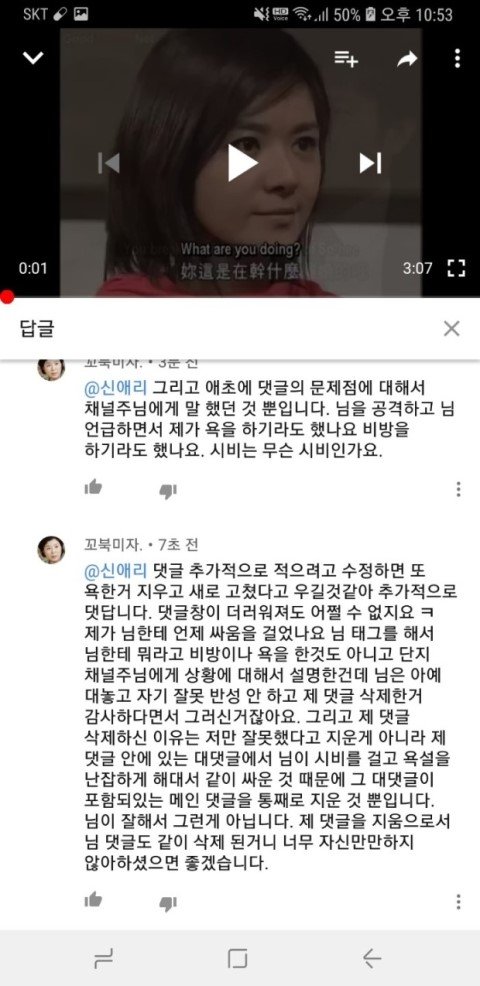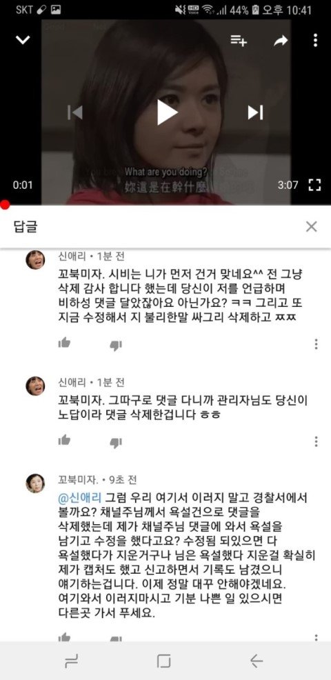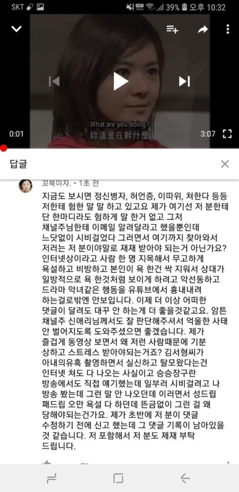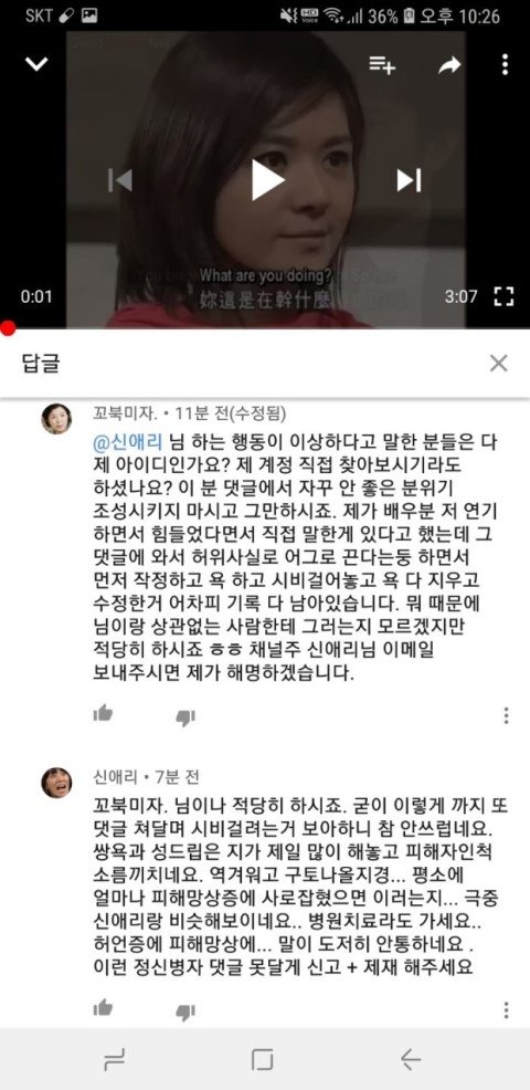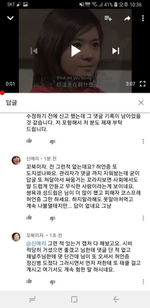 나중에는 채널 주인분께서 직접 댓글을 이렇게 남기실 정도였습니다... 사실 이 분께서도 미리 악플 달지 말아달라고 동영상이 많아서 그 동영상에 있는 모든 댓글들을 보기 힘들어서 혹여나 악플을 발견한다면 여러분들께서 신고 버튼 누르시면 바로 조치하겠다고 그런 글 올리신 적 있었는데, 저는 이 분 채널에서 단 한번도 싸움이나 욕설같은거 해본 적도 없고 이 분이 올리신 동영상 사람들 댓글들 보면서 재밋어하고 쉴 때 즐겨 봤거든요? 그래서 그냥 저도 유쾌한 댓글 남기면 좋아요 누르거나 코멘트 남기거나 그 수준이었습니다 그냥. 단 한번도 이분 채널에서 누구랑 싸우거나 이런 적이 없는 사람인데... 이 분 께서는 제 닉네임만 언급하시고 제 댓글을 삭제했다고 공식적으로 말을 하는데. 먼저 욕설을 하시고 시비 거신 그 분에 대해서는 일체 언급도 없고 오직 저만 공식적으로 저렇게 박제시켜놓습니다.. 그러더니 더 어이없는건 이 분 댓글에 저한테 시비 걸었던 분이 오셔서.