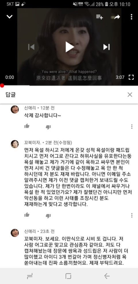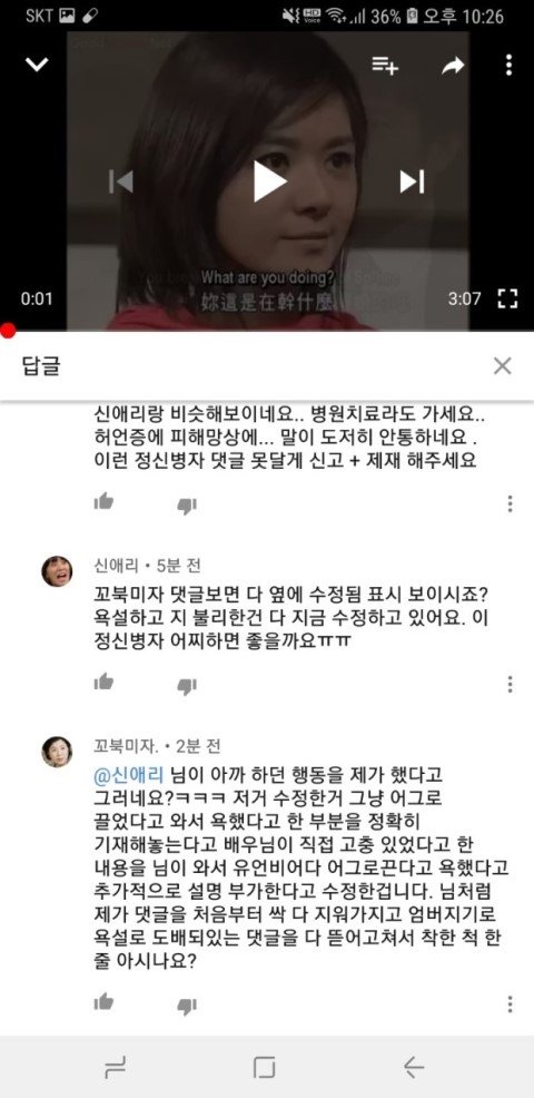 자기가 먼저 시비걸어놀고 서럼의 인격을 완전히 몰살시킨 온갖 악의적인 댓글 테러를 했으면서 이제 와서 자기가 욕한 댓글만 싹 지우고 제가 본인이 먼저 욕하고 수정해서 나만 나쁜사람 만들지 않았냐고 하니까 그런적 없다면서 제가 정신병 있어서 헛거 보고 없었던 일을 있었다고 착각하는거 아니냐고 정신병자라는둥 온갖 자극적인 욕설과 도 넘는 인신공격이 또 이어져 왔습니다. 정신병자란 말은 욕이 아니라 제 상태를 객관적으로 말한거니 받아들이랍니다. 자기가 댓글 수정한거 본인이 더 잘 알텐데 끝까지 아닌 척 하면서 남보고 뻔뻔하게 정신병자라고하는데 인터넷상에서 연기하고 관종짓 하는 이분이 정신병자 아닌가요? 제가 말 추가적으로 한다고 수정하면 욕한거 지운거랍니다.