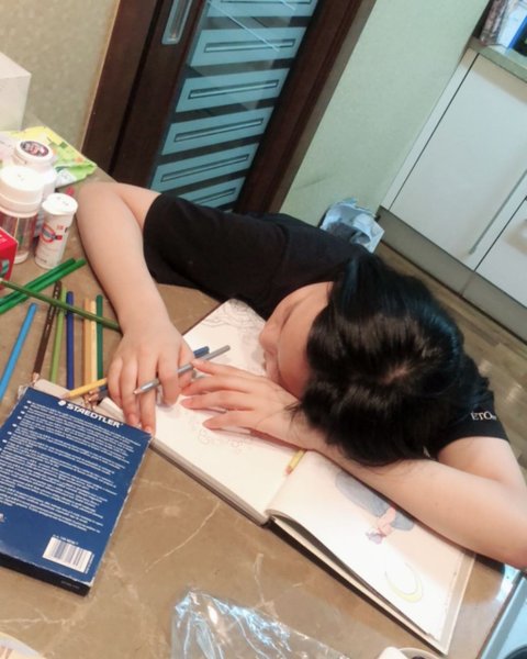 색칠공부하다가 식탁에서