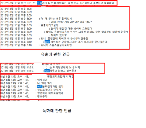 대화내용을 확인해 보시면 알겠지만, 이들은 유출과 녹화에 대해 일상 처럼 얘기합니다. 막상 방송에서 여성들에게는 절대 불가하다고 합니다. 그러나 이들은 공유하기도하고 어떤 BJ의 영상이 유출이 되었으면 좋겠다고 합니다. 시청자들의 본 모습입니다. 비록 유출 되지 않아도 개인의 컴퓨터에 자료로 보관 되어 다시 보고 싶을 땐 언제나 볼 수있고, 업로드 하지 않더라도 친구와 함께 언제나 공유할 수 있다는 것입니다.
