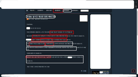"BJ물로 유명해저 각종 BJ소속사들로 부터 모니터링을 당하고 있는듯 합니다", "국내 업체의 저작권 요청을 무시하는 서버회사를 찾기 전까지."