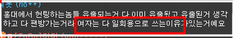 노출한 영상이 유출되는 여성도 피해자라고 할 수 있지만, 노출 및 스킨십을 하지 않아도 이렇게 일방적인 비방과 욕설을 듣는 여성들 또한 피해자라고 생각합니다.