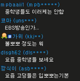 그리고 노출을 하지 않고 유출도 되지 않았지만, 이러한 방송에 참여하게 되어 시청자들에게 보이지 않게 뒷담화 당하고, 욕을 먹고 그에 따라 울음을 터트리고, 얼굴까지 평가 받는 실정입니다. 반드시 수정 보완 재제가 필요한 상황입니다.
