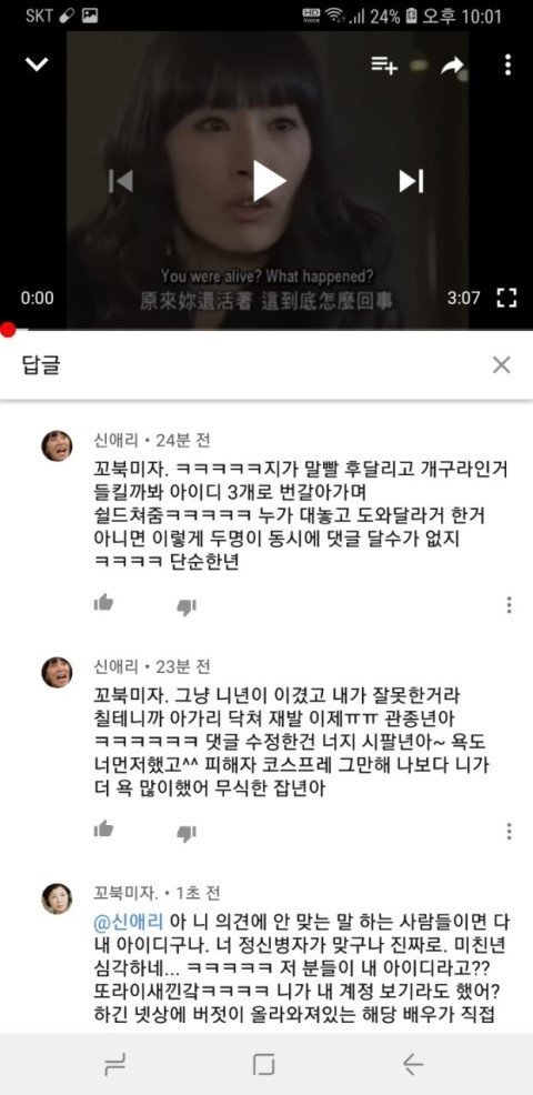 하...ㅋㅋㅋㅋ 진짜 그냥.. 어이가 없어서 제가. 무슨 말도 못 하겠고.. 제가 아이디 새로 만들어서 저런 짓을 한다고요?? 저 분 발상도 참 특이하신 것 같고... 진짜 얼굴보고 저런 짓 할 수 있을지 너무 궁금합니다..