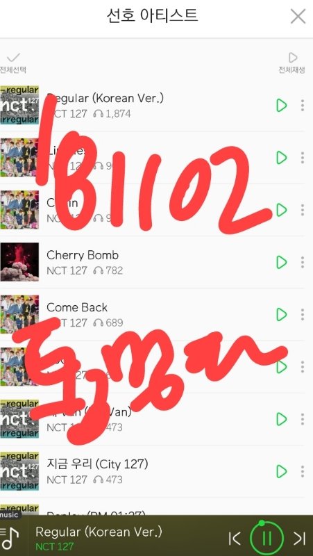 음원발매일부터 스밍한 레귤러 포함 수록곡 누적횟수
