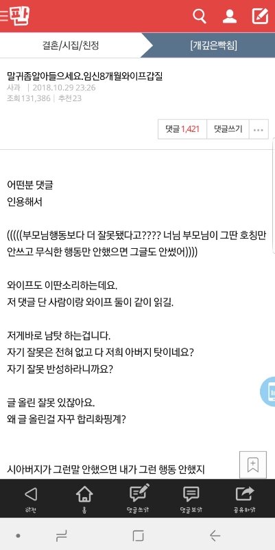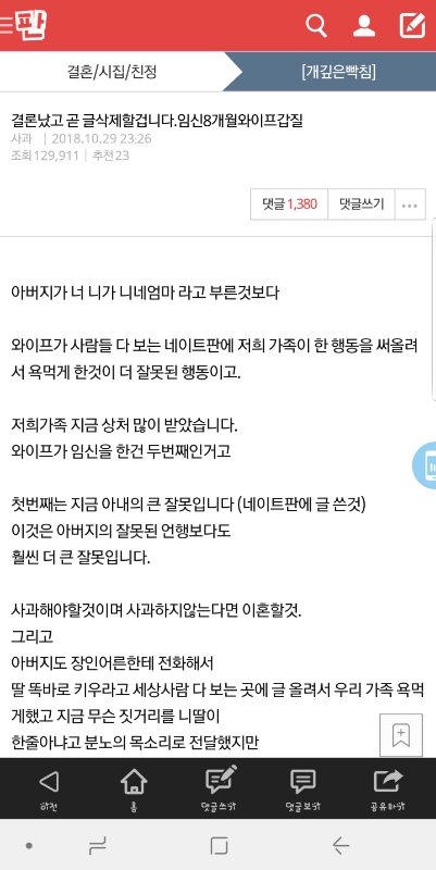 아내와 엄마중 누굴 선택해야하냐고 올린 남의편과 막상 막하인듯.
