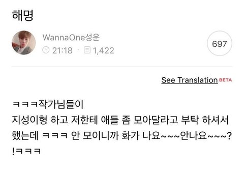 오해하는 사람들 있을까봐 씀 오늘 ㄲㄷㄹㅇㅂ란 방송에 나감 제베때 다같이 영화보려고 성운이가 애들 모으는 장면을 자료화면으로 내고 ㄲㄷ라고 함 사실 다같이 영화보라고 한건 제작진이였고 성운이한테 애들 모아서 같이 영화보라고 부탁함 그래서 본방사수하며 성운이가 해명글 남겨줌