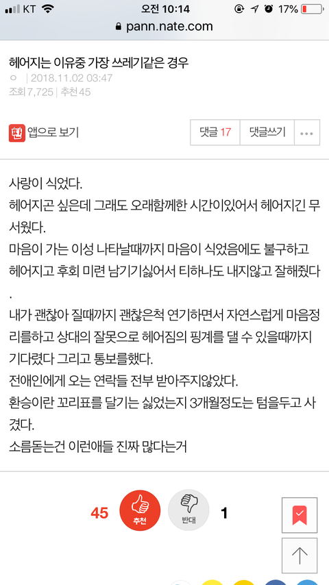 저도 장기연애하고 전화로 차여보고 카톡으로 차여봤지만..나이먹어보니 그게 그리문제인가싶어요. 상대방이 만약 만나서 얘기했다면 담담..