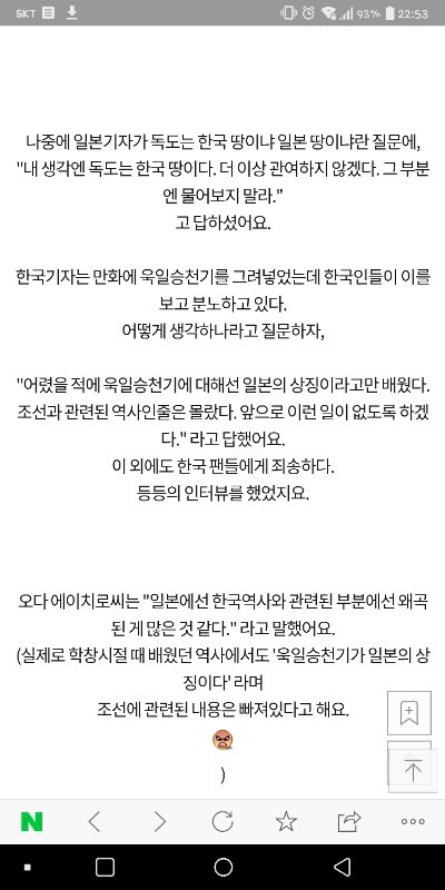 음 저거 논란 예전에 났을 때 나도 쌍욕하고 안 보려고 하다가 우연히 작가 인터뷰 봤었는데, 작가는 욱일기에 대해 잘 못 알고 있었고 다시는 사용하지 않겠다고 했으며, 죄송하다고 하고 독도는 한국땅이라고 말 해서 그 이후로 일본 팬이 좀 끊겼었다고 해. 쉴드는 아닌데 알려주고 싶어서.. 역사 지식이 많은 사람이라 저런 실수를 해서 많이 실망했었는데, 영향력 있는 작가가 그것도 일본인이 저렇게 대처하면서 말 해주니까 다르게 보이더라 https://m.pann.nate.com/talk/316209897 사진 내용은 여기 링크에 있어. 예전에 올라왔었더라공