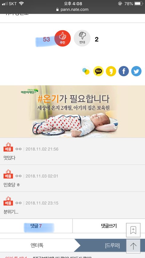 댓글수도 별로 없는데 이상하게 톡선이어서 보면 추천수 ㅈㄴ 높고 그래서 주시 했더니