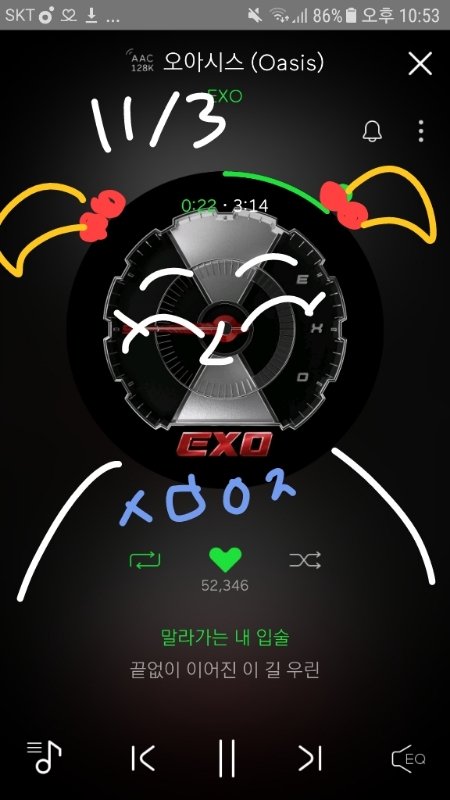 이번에 노래듣고 뮤비같이보는데 서로 대박..... 이말밖에 안하고 둘다 열숨잉돌리는중 ㅠㅜㅠㅠㅜ 서로 최애달라서 포카도 교환하기루 했다 후후.. ^^