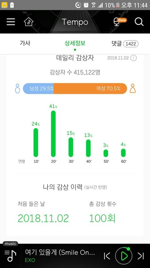 난 템포 100번들음