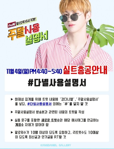 오늘 강다니엘 주말사용설명서랑 실시간 강다니엘 볼 생각하니까