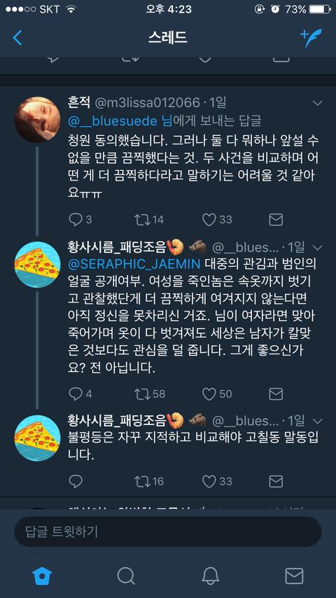 근데 사실 여성관련 강력범죄는 잔인성이 큼에도 주목받지 못하는 경우가 허다하긴 함. 저 사람도 그게 너무 답답했겠지..강서구 사건 일어나고 나서도 일주일동안 여성강력범죄에다 잔혹성이 거의 맞먹는 범죄도 많았는데 청원은 커녕 기사도 잘 안나고.