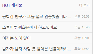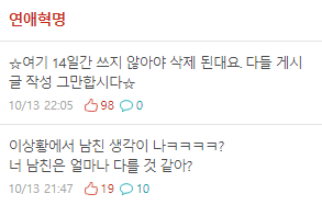 메이크업, 다이어트 게시판도 탈코르셋 한다고 다 삭제됐고, 연애 게시판도 곧 삭제 예정.