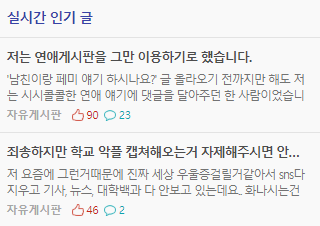 다른 여대도 페미는 많다지만 아직 에타에 다이어트, 메이크업, 연애 게시판은 다 있음.