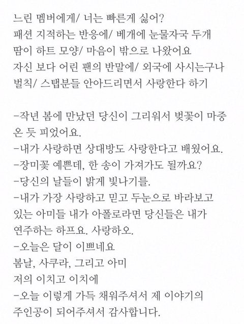멤버한명한명쓴거 다 읽어줘서 너무 고마워