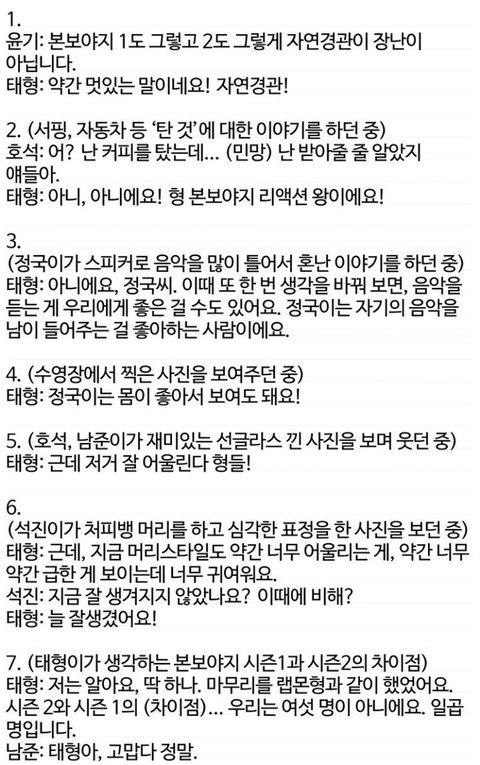 [태형]에 대한 멤버들의 평가