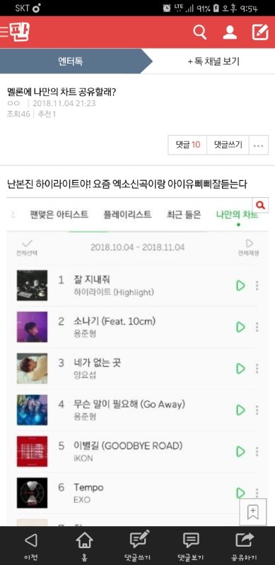 어떤 천사가 썩수 나만의차트 공유하자고 글을 이렇게씀