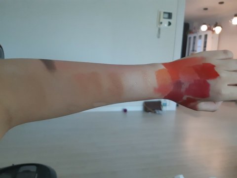 그날이라서 조카 예민했는데 화장대 보이깐 화장하고싶은데 화장 얼굴에하기는 싫어서 있는거 손에다 바름 쿠션이랑 틴트랑 립스틱이랑 파데랑 등등 다바름 지워도 안지워진다;