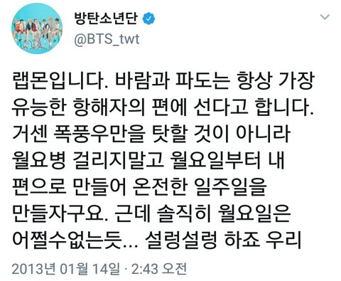 짹에서 어떤 분이 알티해주심 ♡ https://twitter.com/BTS_twt/status/290514538779013120?s=19