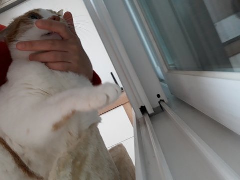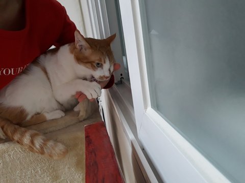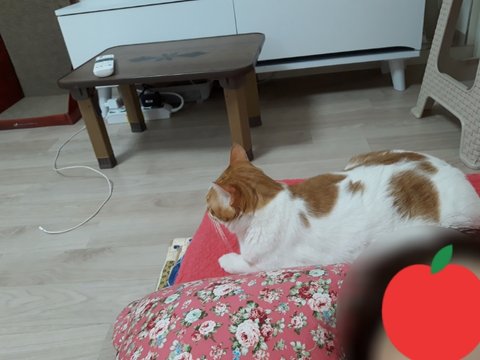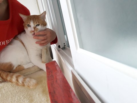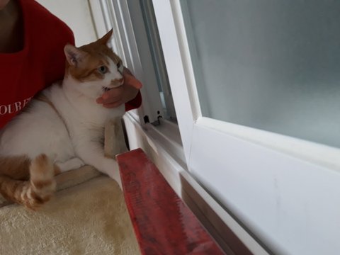 창가에서 바깥 구경하고 있는 도칠이를 뒤에서 사뿐히 안아보았음.