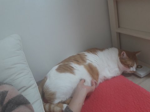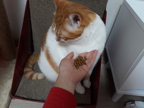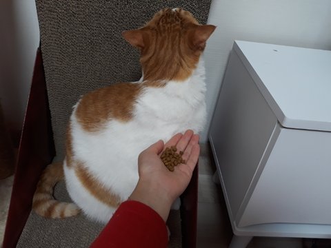 도칠이가 배가 고파서 야옹야옹 하길래 사료를 먹일려고 하고 있음