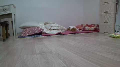 도칠이 등치에 못이겨 바닥으로 떨어지고 있는 침실..