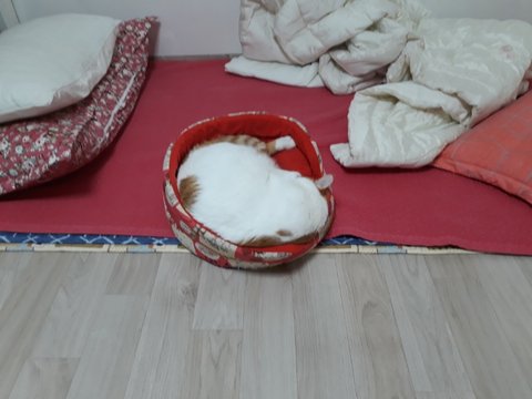 집사가 집에 도착을 했는데도 퍼질러 자고 있음.