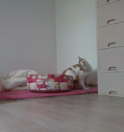 사료말고 간식달라고 집사에게 시위하는 중임.