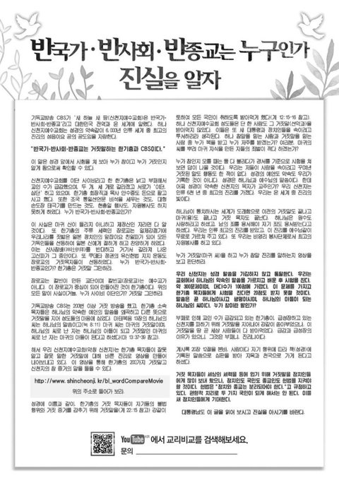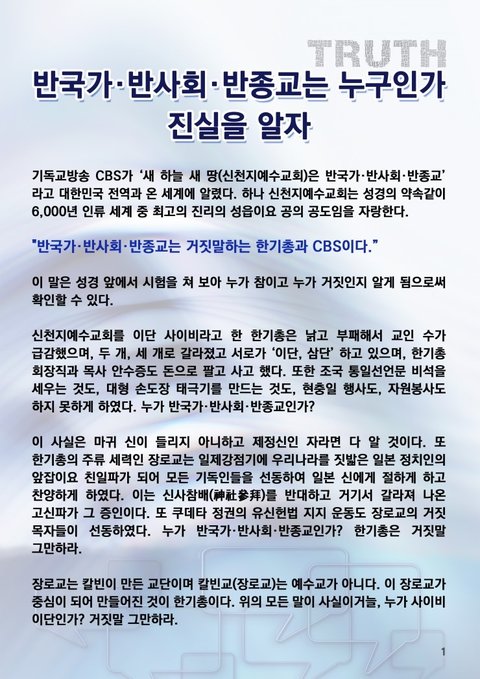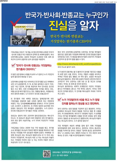 ■ 국민 여러분, 한기총과 종교방송 CBS의 거짓말에 더 이상 속지 마십시오!