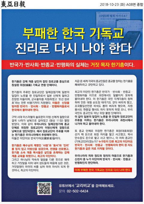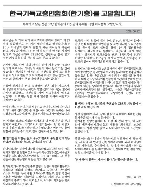 부패하고 낡은 전통 교단 한기총의 거짓됨과 부패를 국민 여러분께 고발합니다.