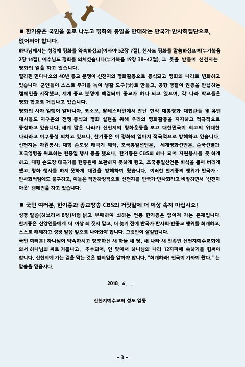 ■ 국민 여러분, 한기총과 종교방송 CBS의 거짓말에 더 이상 속지 마십시오!
