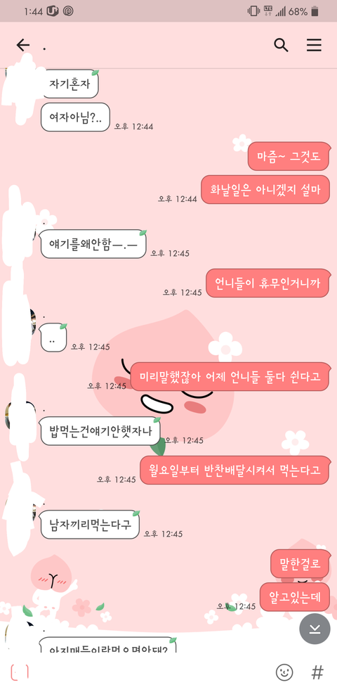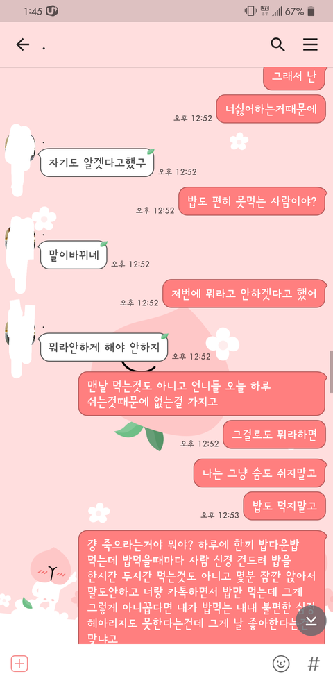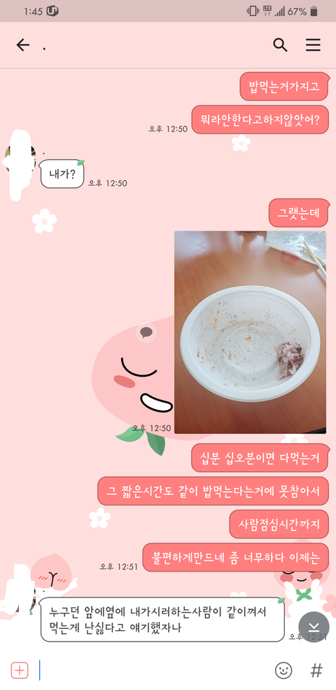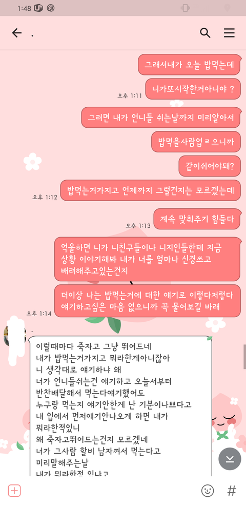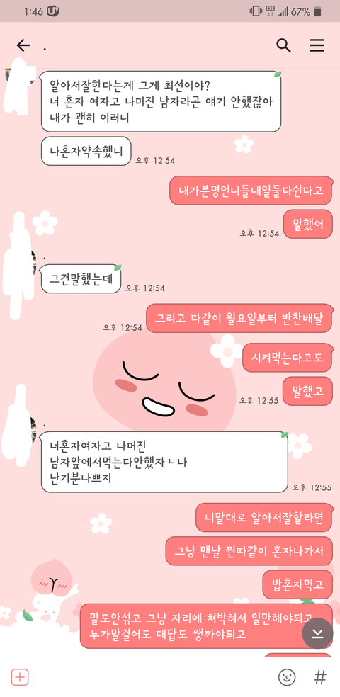 밥 먹을때마다 누구랑 뭐먹는지 보고를 하라고 함