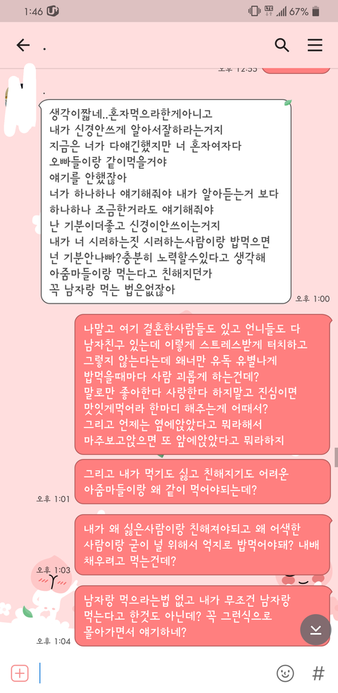 제목 그대로 나는 점심시간마다 남친한테 보고를 해야함