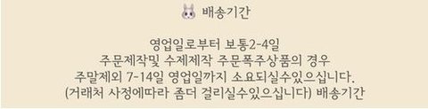 -판매자 : 고객님 저희가 분명 써놨잖아요. 그리고 저희가 보내드리기 싫어서 안보내드리는 것도 아니고 거래처에서 물량이 밀려서 발송이 지연되고 있는거거든요. 왜 저희가 잘못했다는 식으로 말하는거에요? 그리고 주문이 지연될 수 있다고 저희는 네이버 톡톡으로 분명 말씀 드렸는데요. 상세페이지에도 나와있어요. (참고로 상세페이지에는 주문제작 제품이라 7~14일 걸린다고 나와있습니다.)