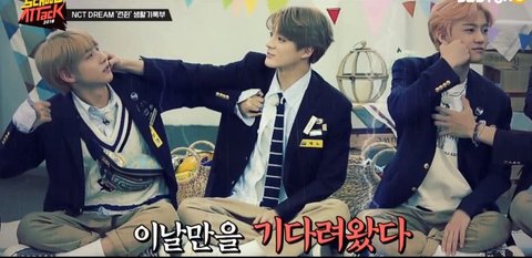 싸우는 컨셉 같은 거 잡는 건데 런쥔이는 의욕 넘치게 싸우는 제스처 취하고 제노는 사모예드 같이 눈 꿈뻑 뜨고 런쥔 귀여워하는 중이고 재민이는 싸움에 관심이 없어서 영혼 없는 젤리주먹 같음 ㅋㅋㅋㅋㅋㅋ