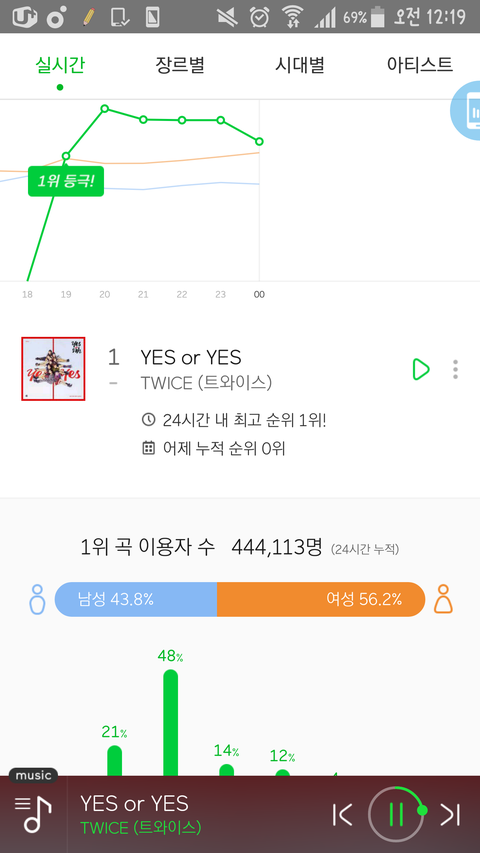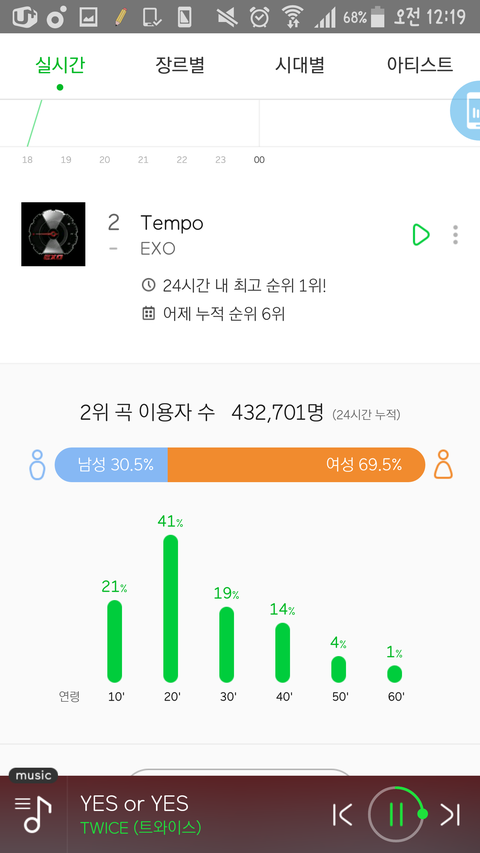 이게 말이돼??? 엑소 24시간 누적이 트와이스 6시간 이용자수랑 똑같음 이거보고 남돌 조카 거른다는거 체감 확 오네