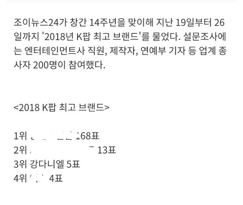 2018년 K팝 최고 브랜드' 3위 강다니엘❤