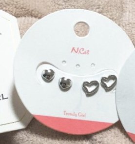 은침으로 된 째끄만 하트모양 귀걸이와 하트 모양 두개가 붙어있는 은색 팔찌가 들어있었어요.