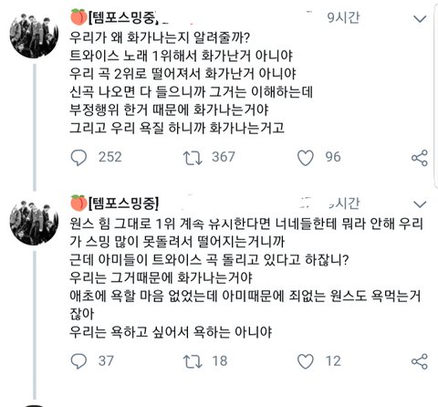 저거 멘션으로도 우리 팬덤이 패고 있는 글이잖아;;