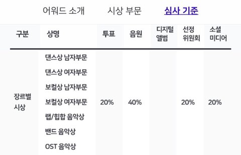 투표 20% 나머지 음원 40% 인데..?
