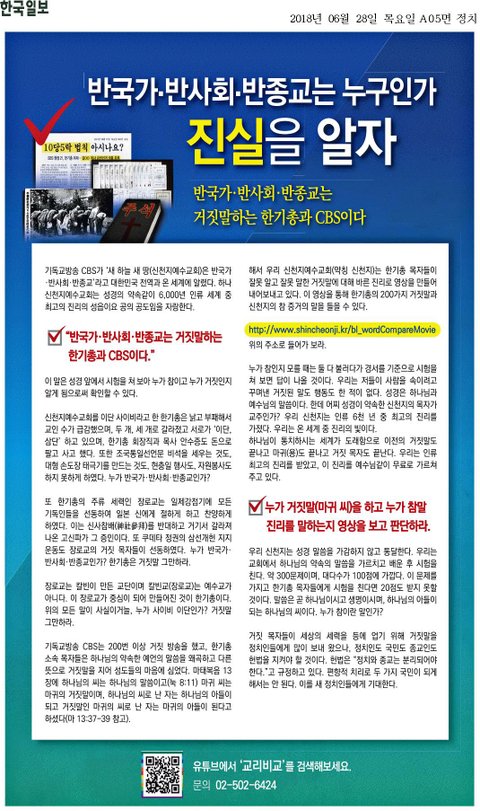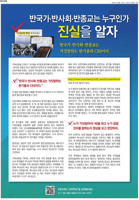■ 국민 여러분, 한기총과 종교방송 CBS의 거짓말에 더 이상 속지 마십시오!