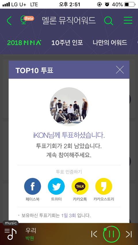 멜론뮤직어워드 탑텐 아직도 11위임ㅠㅠ투표 누가 안하는거임.. 아이코닉들아하루 3번 투표 잊지말라구..아침 점심 저녁 먹을때 마다 한번식하자 제발탑텐 들어야지!!!!!!
