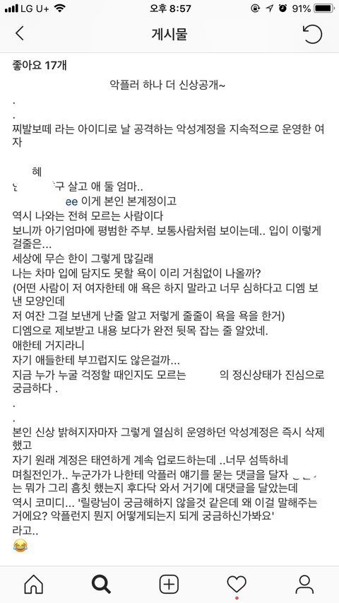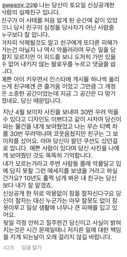 오랜기간동안 악플러활동을하며 자신을 괴롭혀왔던 그 계정의 장본인이 저라고하며