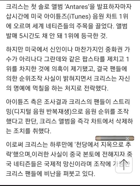 엑소 전 멤버 크리스, 미국 아이튠즈 차트 순위 조작 국제적 망신