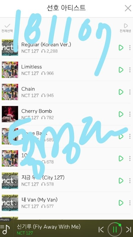 음원발매일부터 스밍한 레귤러 포함 수록곡 누적횟수