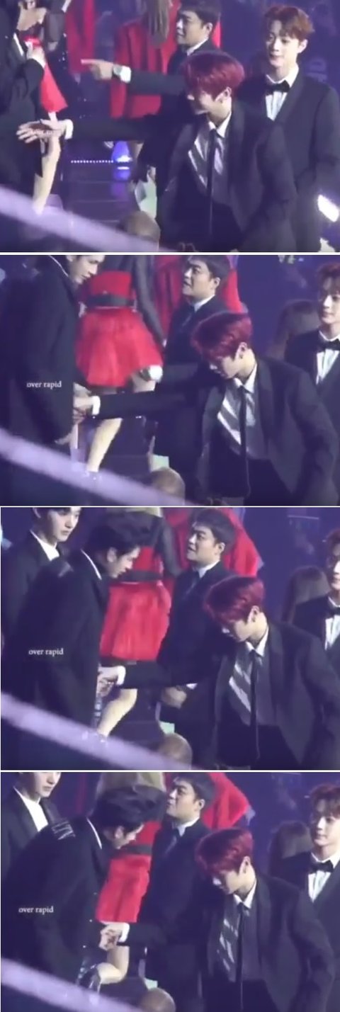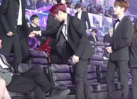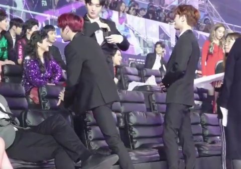 알고보니 멤버형 팬의 슬로건 보여주려고 불러서 내려오게 한거였음.